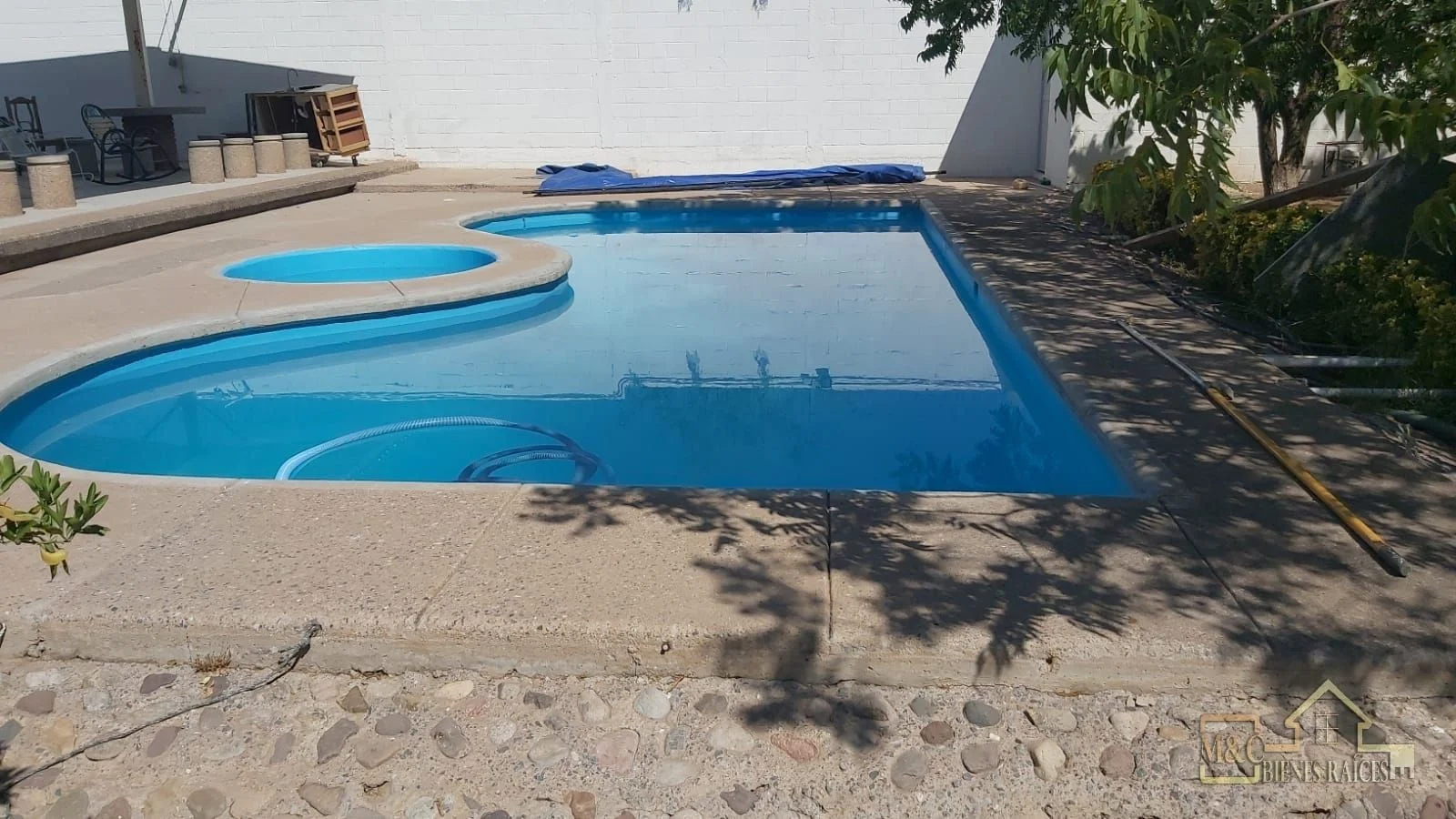 Además, dispone de un cuarto de estudio, aire acondicionado y lavandería para mayor confort. En cuanto a áreas recreativas, destaca una alberca con jacuzzi de 5 x 10 metros con bomba hidráulica, y un espacio techado con mesa, bancos de concreto y asador estilo chimenea, perfecto para convivencias al aire libre. La propiedad se encuentra cerca de la zona industrial y hacia la salida a Aldama, facilitando el acceso a puntos clave de la ciudad. Se acepta pago al contado o crédito bancario.